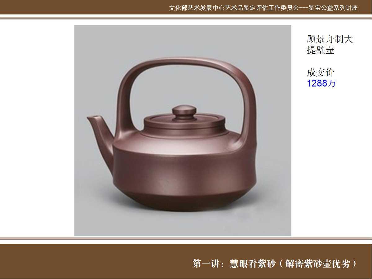 1288万成交顾景舟制大提壁壶 2012年5月瀚海拍卖成交作品。 材质:紫泥