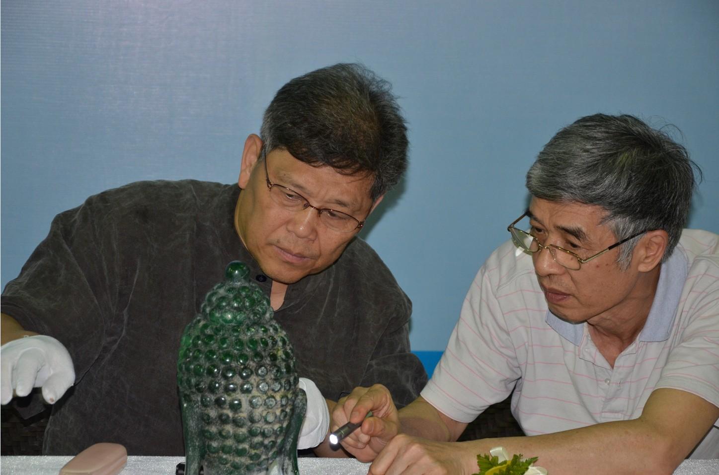鉴定专家吕少民(左一)、贺万湘(右一)正在鉴定