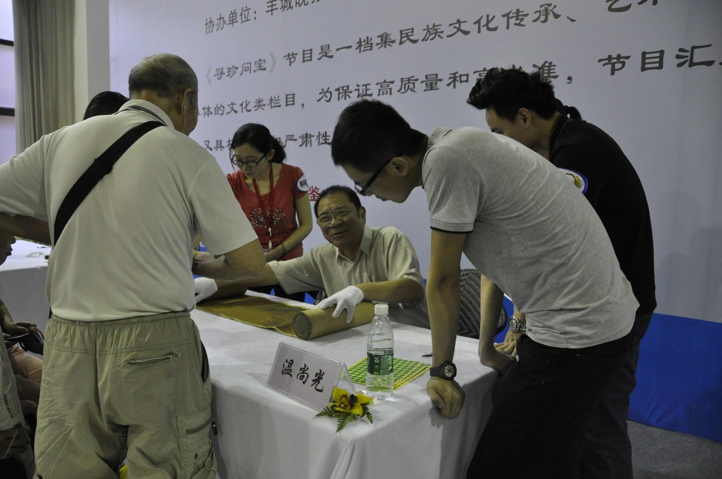 5月30日,大型鉴宝类节目《寻珍问宝》东莞海选在天骄峰景拉开帷幕。该节目由文化部艺术服务中心艺术品鉴定评估广东工作站(以下简称工作站)指导,文华藏宝馆、广东电视台教育频道和广州峰会艺术品鉴定有限公司联合主办。工作站艺术品鉴定评估委员会主任委员吕少民,委员温尚光、周学文、伍炳亮、陈魁、贺万湘等担任了本次海选活动的评委。本次海选活动由羊城晚报•东莞新闻协办,并得到了光大•天骄峰景的大力支持。上午九点,海选活动尚未开始,早有持宝人已填表领号,在鉴宝等待区等候专家的到来。上午十点,在大家的翘首企盼下,活动准时开始。持宝人根据自己的藏品类别,登记排号,依次将手中藏品拿给专家甄别评鉴。