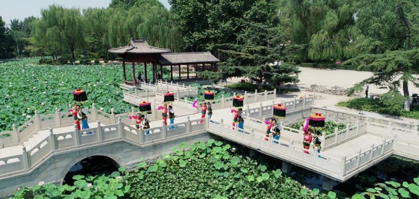 7月3日,在晋州市魏征公园,晋州官伞爱好者在排练。晋州官伞是流传于河北省晋州市境内的一种传统民俗舞蹈,已被列入河北省非物质文化遗产名录。晋州官伞以舞者持伞表演为特色,通过特有舞步和动作相互配合,表演俏皮生动,队形变化自由,娱乐性强。