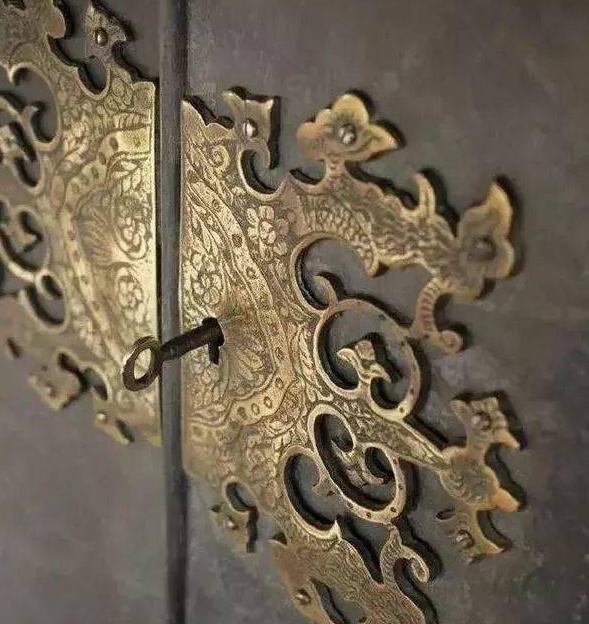 铜活件包括面页、合页、铰链、拉手、包角、镶条、锁面等,有些材质较好的家具还会选用白铜打造,时间长了会泛出幽幽的银光。