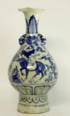 左:(元)青花八棱狮球纹玉壶春瓶, 河北博物院藏