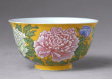 左:(清康熙)黄地珐琅彩牡丹纹碗, 故宫博物院藏