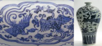 左:(明宣德)青花菱形开光双凤穿莲花纹长方炉(局部),故宫博物院藏