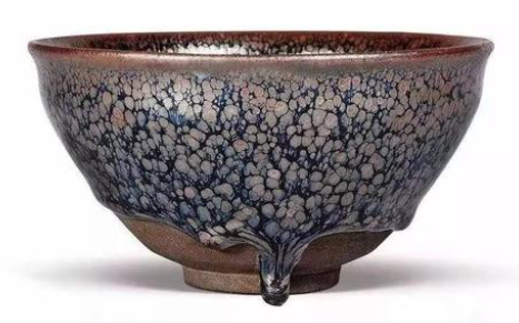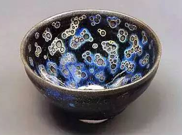 如同鹧鸪身上羽毛斑点纹理的,宋人称为“鹧鸪斑”,日本人认为像沸腾油滴散落碗内,也称为“油滴纹”,斑纹有大有小,有疏有密,有“金油滴”“银油滴”的区别。