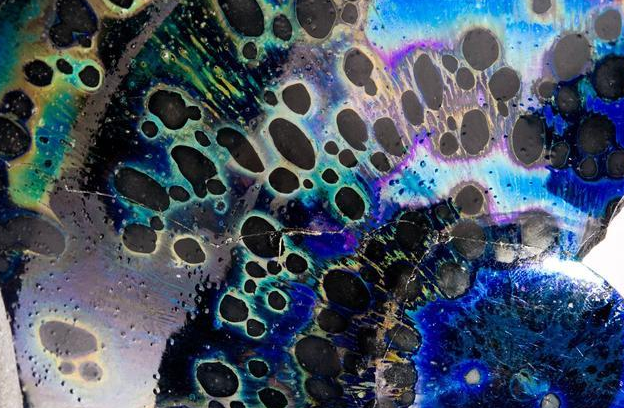 除了不同的斑纹,建盏还有一种特殊的釉色称为“曜变”,指的是黑釉瓷在光照下产生多种颜色的彩光,如同阳光的光晕。这种釉色如同星空般变化莫测,被认为不似人间之物。