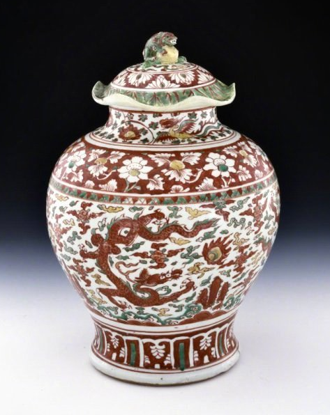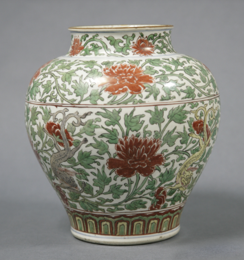 清康熙·景德镇窑五彩螭龙牡丹纹罐