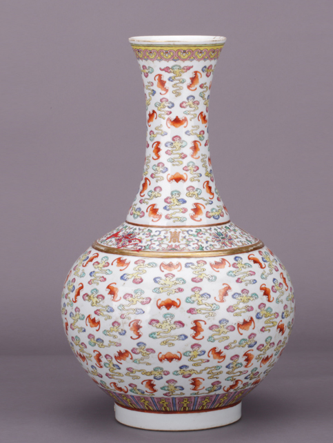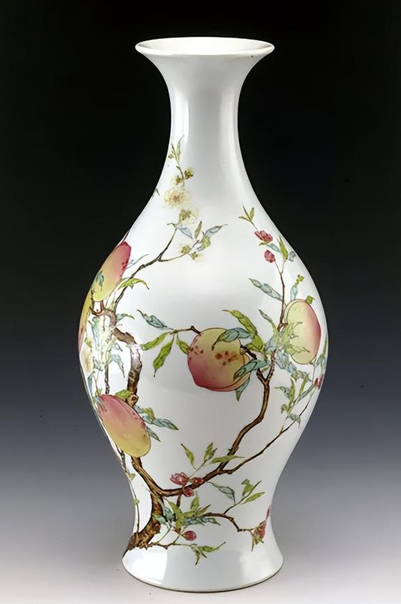清雍正·景德镇窑粉彩蝠桃纹橄榄瓶