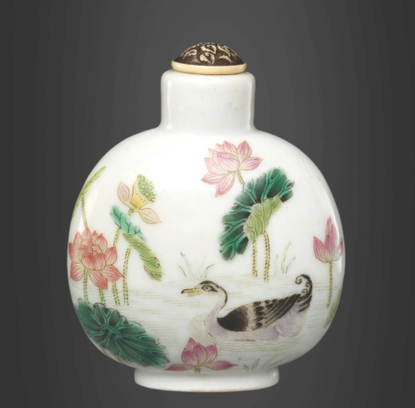 清道光·粉彩荷塘鸳鸯鼻烟壶
