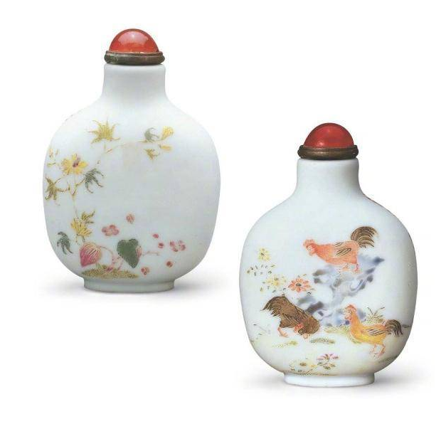 清晚期·粉彩鸡石花卉图鼻烟壶