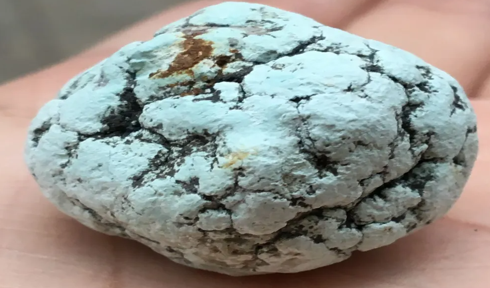 绿松石内的铁杂质有时会形成褐黑色的“铁线”,这样的绿松石被称为“铁线绿松石”或“蓝缟松石”。