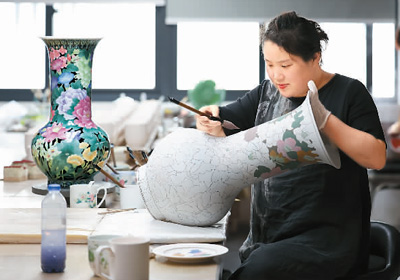 湖南省醴陵市获评第二批国家文化出口基地以来,立足陶瓷产业推动对外文化贸易高质量发展,培育了一批文化贸易骨干企业,多家企业被评为全国文化出口重点企业。图为7月6日,醴陵尚方窑瓷业有限公司的工人在加工瓷瓶。