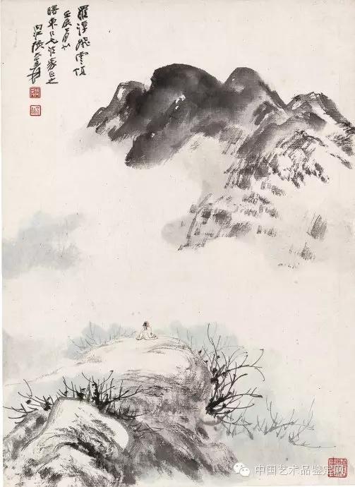 张大千 1952年作 坐看云起(罗浮飞云) 立轴