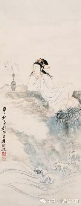 仿敦煌风格仕女画及敦煌菩萨也是张大千画的一大特色,但无论前者后者,伪作都很多,近年甚至有成批制作的,其中前者比后者更难分辨,因为菩萨不同于仕女画,其特有的肃穆庄严之气,若不是张大千在敦煌三年多的熏陶,是难以深入体会的;而菩萨的面目,即肃穆又姣好,则更是非大千者难以使之达到和谐。