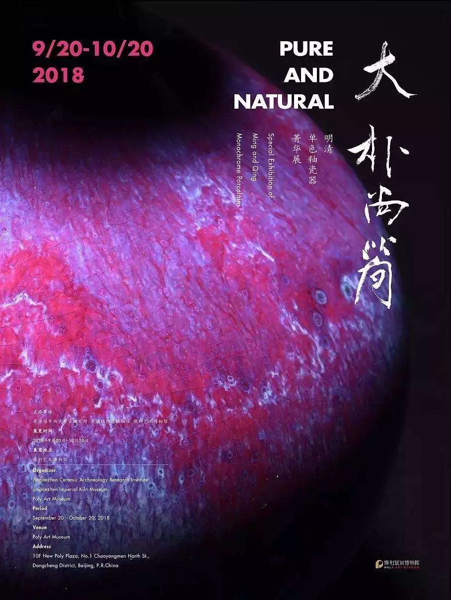 “大朴尚简--明清单色釉瓷器菁华展”于2018年9月20日至2018年10月20日在保利艺术博物馆(北京市东城区朝阳门北大街1号新保利大厦云楼10层)举行。本次展览中,将包括明嘉靖黄釉仰钟杯、清康熙-雍正仿宣德宝石红釉僧帽壶、清乾隆祭蓝釉天球瓶、清雍正影青釉刻海水蝠纹碗、清乾隆青釉浮雕葫芦纹葫芦瓶、清雍正鳝鱼黄釉仿青铜壶、清雍正松石绿釉盖盒、清雍正炉钧釉如意绶带耳葫芦瓶等来自两大收藏巨擘的20余种釉色器物,丰富的釉色种类可谓近年罕见。
