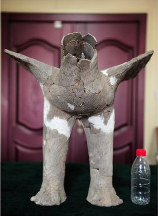 经过一年的阶段性工作,在位于遗址核心区的皇城台,考古工作者清理出内瓮城和主门道遗迹,并在皇城台东护墙北段的“弃置堆积”中集中出土一百余片卜骨和包括万余枚骨针在内的大量骨器。值得一提的是,在辨认拼对后,考古工作者还发现了造型生动的大型陶鹰。
