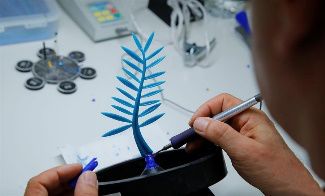 在瑞士梅兰,一名萧邦珠宝公司工作人员在铸造过程中工作。珠宝品牌萧邦工作人员25日演示了制作戛纳电影节金棕榈奖奖杯的制作流程。珠宝品牌肖邦作为戛纳电影节的主要赞助商,自1988年起就开始为戛纳电影节的最高奖项——金棕榈奖设计奖杯。