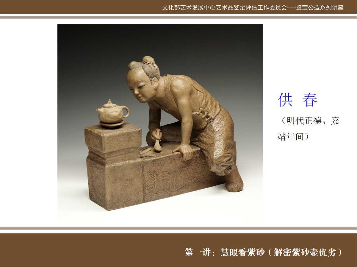 多数学者都认为是供春。供春是壶艺界的泰斗,鼻祖。供春原是一个大户人家的书童,这家人家姓吴,叫吴颐山。供春经常陪伴主人吴颐山到金沙寺去读书,金沙寺在宜兴市郊的山林里。吴颐山,后来做过进士,做过大官:四川的参政,湖广的巡抚,这是后话。在安静的金沙寺里,吴先生两耳不闻窗外事,一心只读圣贤书。书童小供春,则四处溜达,到处看看。