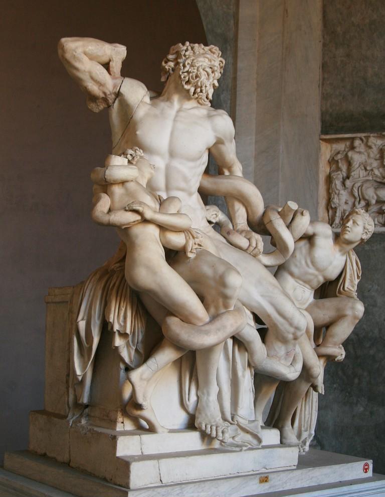 拉奥孔(The Laocoon and his Sons),大理石群雕,高约184厘米,是希腊化时期的雕塑名作。阿格桑德罗斯等创作于约公元前一世纪,现收藏于罗马梵帝冈美术馆。据考证,系阿格德罗斯和他的儿子波利佐罗斯和阿典诺多罗斯三人于公元前一世纪中叶制作,1506年在罗马出土,震动一时,被推崇为世上最完美的作品。意大利杰出的伟大雕塑家米开朗琪罗为此赞叹说“真是不可思议;德国大文豪歌德以为《拉奥孔》以高度的悲剧性激发人们的想象力,同时在造型语言上又是“匀称与变化、静止与动态、对比与层次的典范