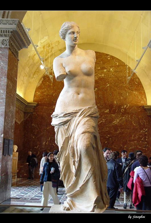 几千年来,她就这样哀伤的静默在那里。法国与土耳其为她开战,海上风暴大作,抢夺的过程中,她丢失了手臂,软硬兼施最终去了巴黎,从此,维纳斯就成了一个断臂女神。并被陈列于罗浮宫特辟的专门展室中。