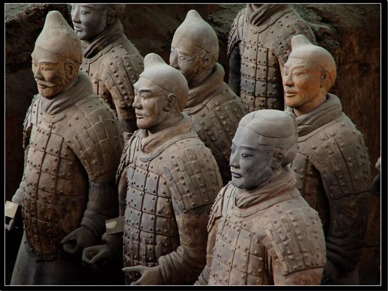 看中国的秦始皇兵马俑造型,形态庄严面容平静,从一定程度上反映中国古代的人的身体美学。