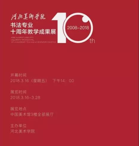 “河北美术学院书法教学成果展”于2018年3月16日至3月28日在中国美术馆举行。