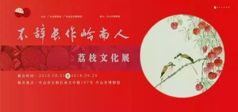“不辞长作岭南人--荔枝文化展”于2018年8月1日至2018年9月25日在中山市博物馆举行。展览共展出70多件(套)以荔枝为题材或相关的展品,从自然、艺术、生活三个角度,揭开荔枝的自然奥秘,解读荔枝的艺术形象,探究荔枝的社会文化内涵。