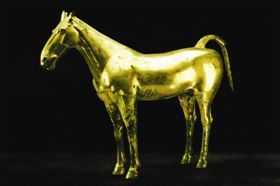 “天马来兮从西极,径万里兮归有德;承灵威兮降外国,涉流沙兮四夷服。”公元前101年汉武帝征伐大宛国获得大批汗血马,武帝特意为此而作《西极天马歌》以赞宝马。“行天莫如龙,行地莫如马”作为“甲兵之本,国之大用”,马匹在两汉四百年间一直为汉王朝所重视,因而在两汉文物中留下了诸多关于宝马的艺术珍品。