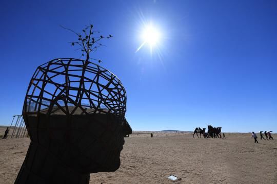 11国户外雕塑亮相甘肃民勤“唤醒”沙漠 借艺术倡环保