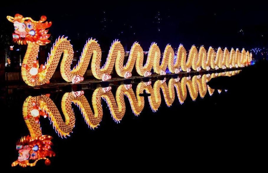 1月13日晚,首届重庆铜梁中华龙灯艺术节开幕。150组造型各异、色彩斑斓的龙灯灯组亮相“中华龙乡”重庆铜梁,吸引市民驻足。