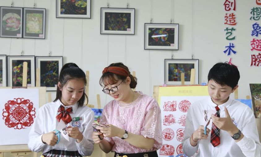 6月19日,河北省邢台市第五中学剪纸社团的学生在老师的指导下学习剪纸。河北省邢台市第五中学把非遗传承与学校社团活动有机结合,开设多项非遗课程,让学生们在社团活动中学习、传承非遗技艺,感受传统文化魅力。