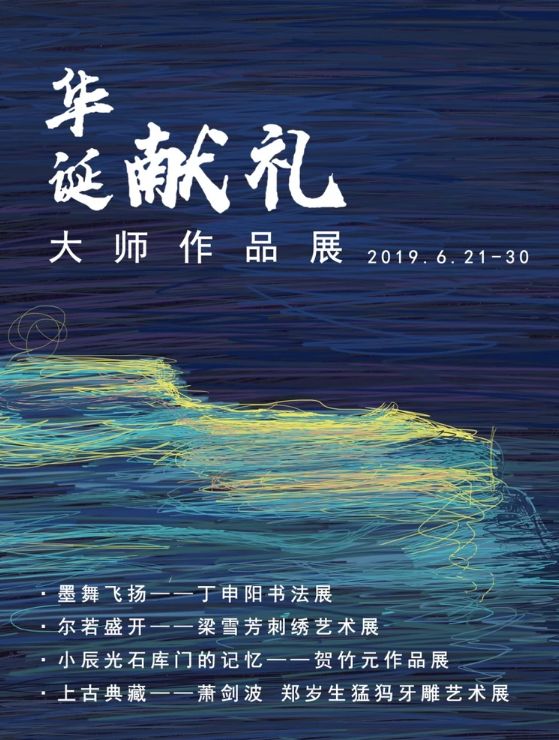 今年是中华人民共和国成立七十周年、上海解放七十周年,本次大师作品展将集中展出包括刺绣艺术大师梁雪芳、著名书法家丁申阳、海派书画家贺竹元、中国牙刻大师萧剑波等大师作品,通过展览向来宾展现中华民族在走向伟大复兴的新征程上的文化自信和文化自觉。艺术家指间的自信和自觉,也正是今天中国人所处时代的思想语境,是他们的倾情献礼。展览时间为6月21日至6月30日。