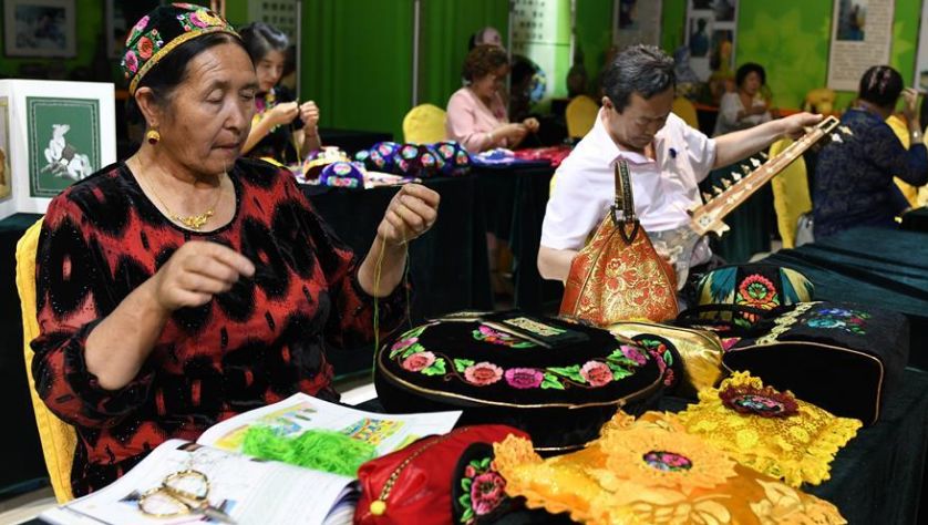 6月27日至29日,2019年哈密传统工艺工作站传承人对话活动在新疆哈密市举行。来自北京、上海、广州、江苏、山西等地的专家、高校师生、企业负责人等,与新疆哈密刺绣非物质遗产传承人面对面探讨刺绣技艺,助推传统手工艺的挖掘、保护、发展和提升。