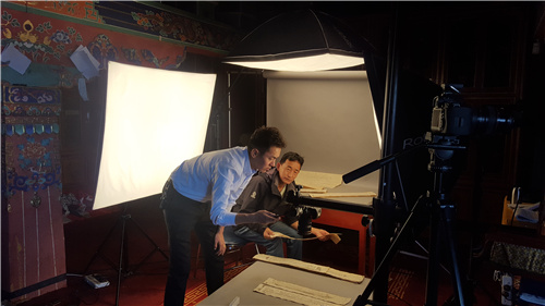 在布达拉宫古籍文献(贝叶经)保护中心,工作人员正在对馆藏明永乐八年《甘珠尔》大藏经进行数字化建档。在布达拉宫古籍文献库内,工作人员正在对库存珍贵古籍进行鉴定,并进行近20项内容的藏、汉双语信息数字化登记。