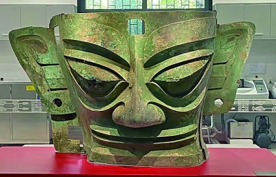 三星堆遗址出土的世界最大的青铜面具。光明日报记者周洪双摄/光明图片