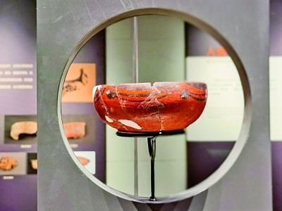 河南省三门峡市庙底沟遗址出土的仰韶文化鸟纹彩陶盆。光明日报记者李韵摄/光明图片