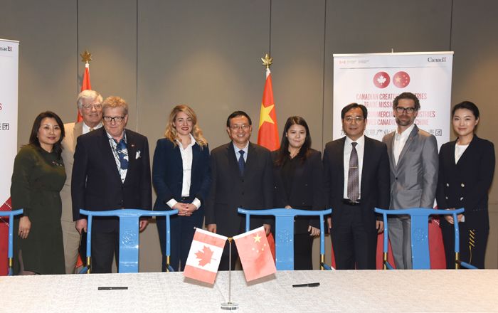 4月11日至12日,中国文化和旅游部、加拿大遗产部、加拿大驻华使馆共同在京举办了中加文化产业论坛系列活动。中国文化和旅游部长雒树刚、加拿大遗产部长麦勒尼·乔利、加拿大驻华大使麦家廉以及两国136家文化企业代表出席了活动,其中中方企业77家,加拿大企业59家。