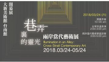 台南大新美术馆于2018年3月24日推出「巷弄里的灵光──两岸当代艺术展」,免费开放民众参观。展览将持续到2018年5月24日。