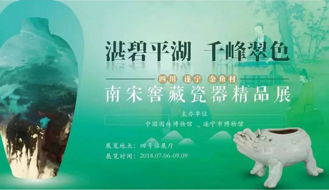 “湛碧平湖 千峰翠色--四川遂宁金鱼村南宋窖藏瓷器精品”于2018年7月6日至2018年9月9日在中国园林博物馆四号临展厅举行。来自金鱼村南宋窖藏百件宋代瓷器精品、孤品。首次亮相北京与广大市民见面,展现宋瓷崇尚素雅,寻求“自然意境”之美,尽显其对自然美的追求与中国园林,“虽由人作 宛自天开”理念不谋而合之妙。