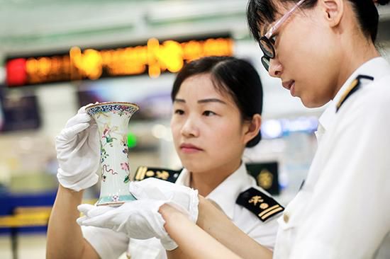九洲海关截获文物 两件清代瓷器属禁止出境文物