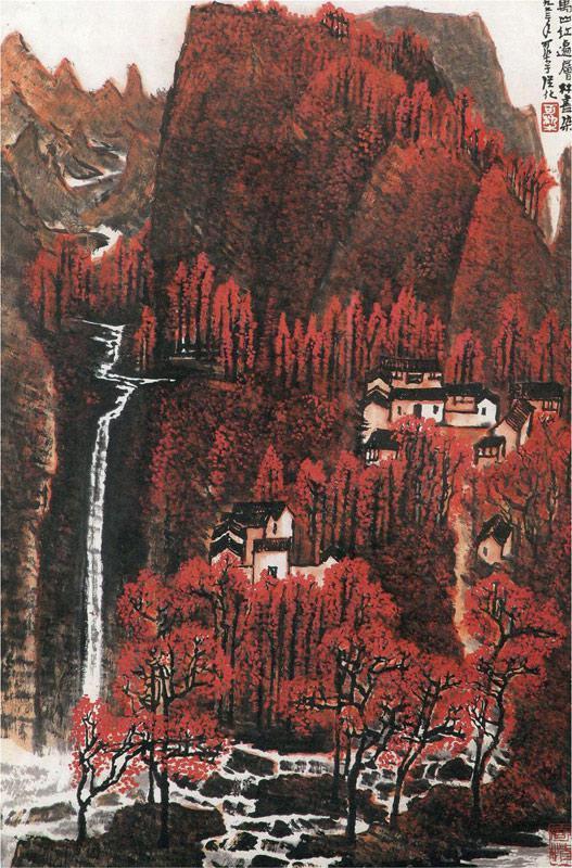 李可染首次创作此题材是1962年在广东从化,款识题于画的右上角,为“万山红遍,层林尽染,一九六二年秋可染作于从化翠溪宾舍”。