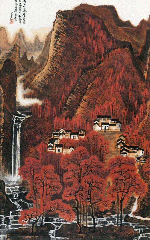 1964年创作于北京西山,画左上角题:“万山红遍,层林尺染,毛主席词意,一九六四年可染”。