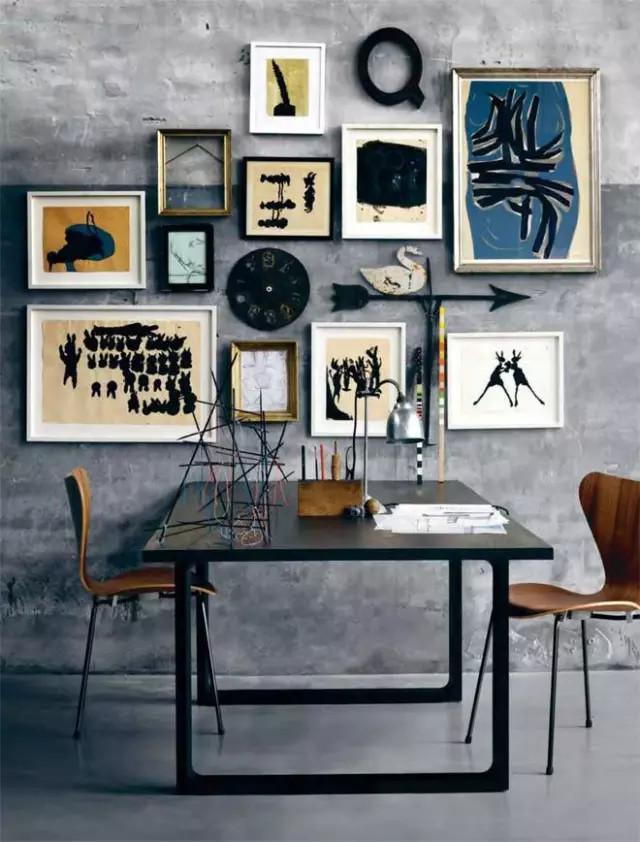 小幅画的集合,画框的大小、颜色、粗细都市要花心思好好搭配的。