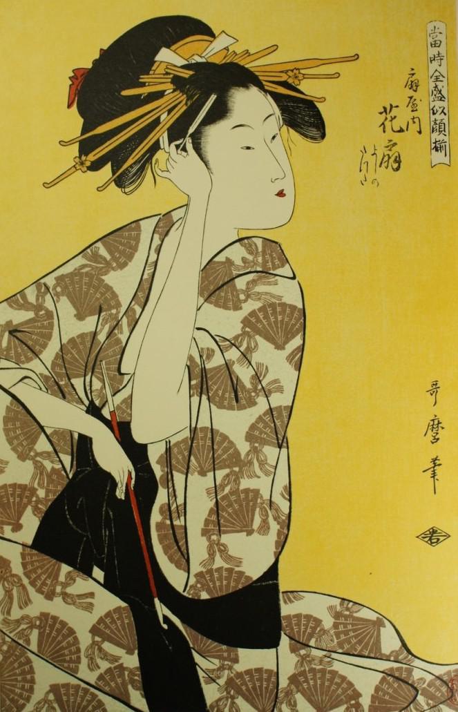 喜多川歌麿是日本浮世绘最著名的大师之一。善画美人画。20岁时,他所画的书籍封面有“北川丰章”的落款,29岁才从丰章改为歌麿。他的创作活动正值江户市民文化的全盛期,其作品成为江户市民文化中的重要组成部分。