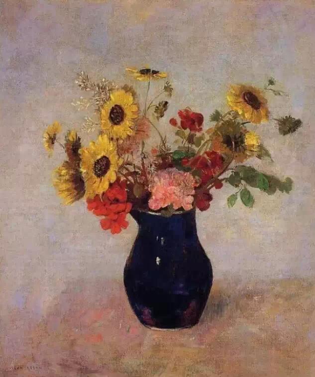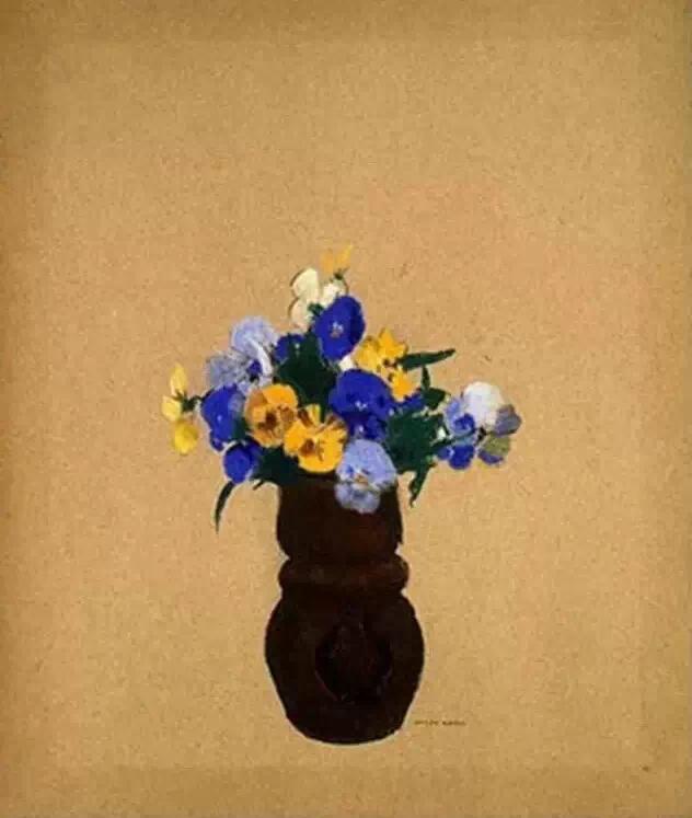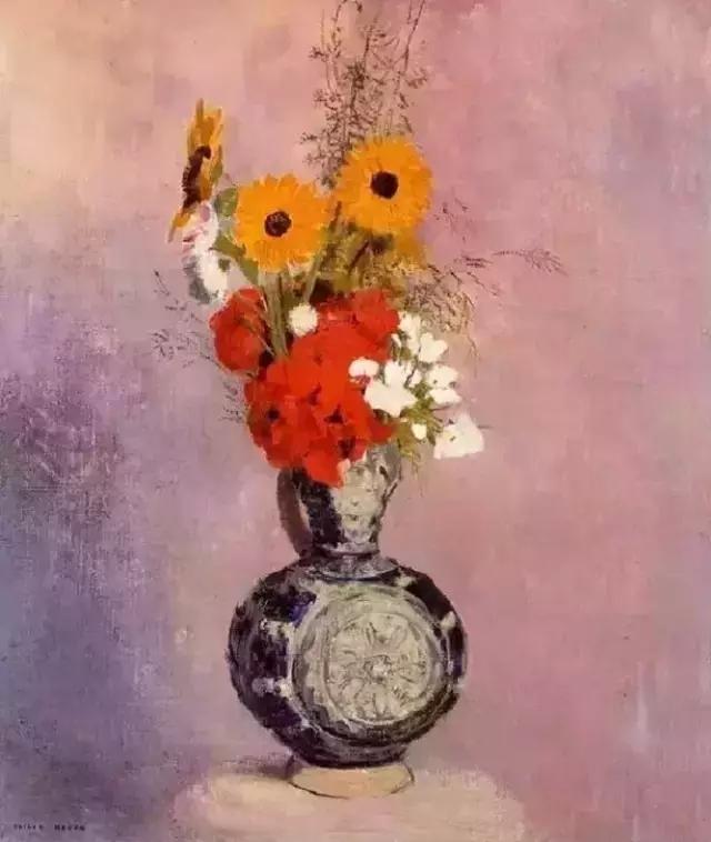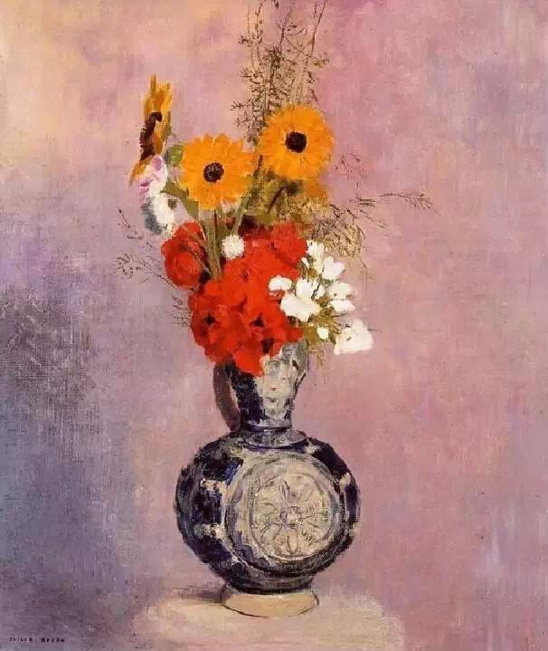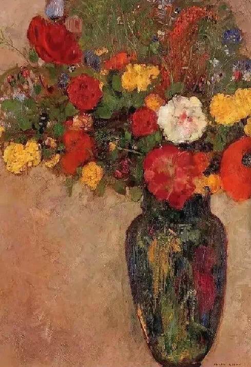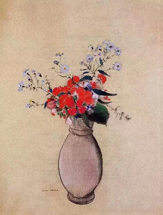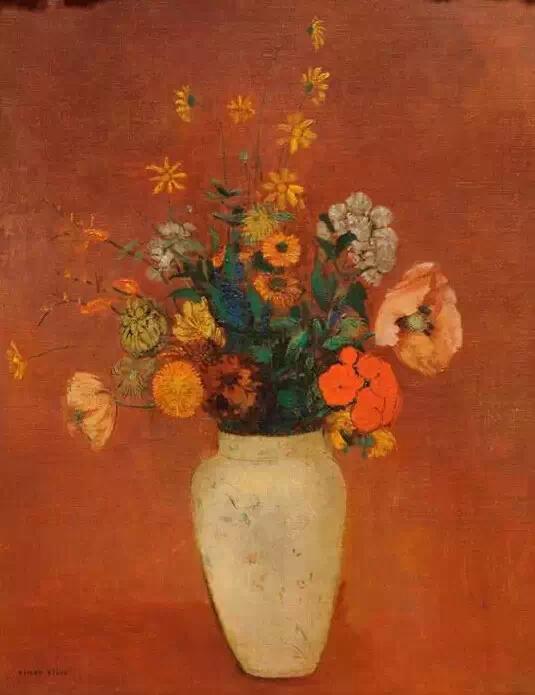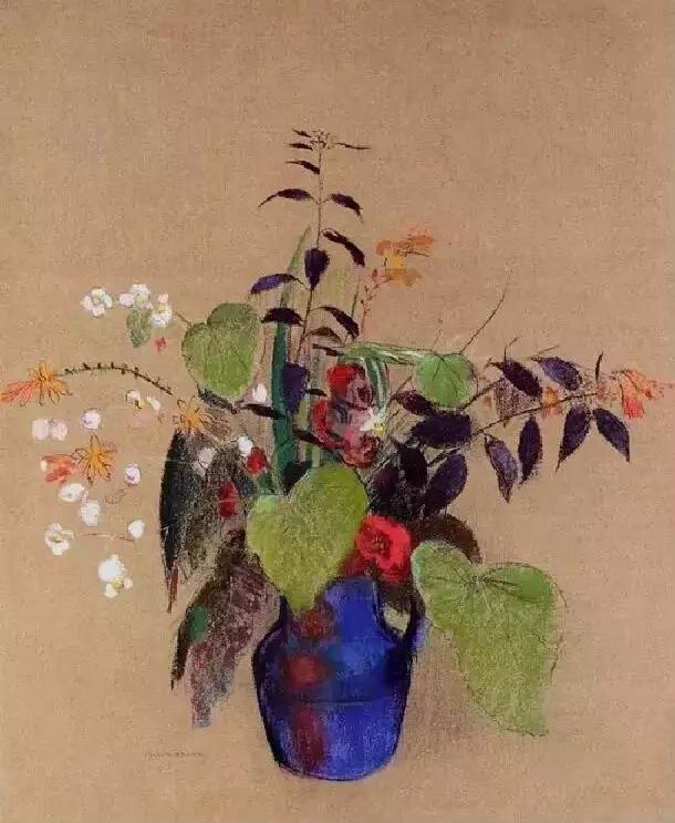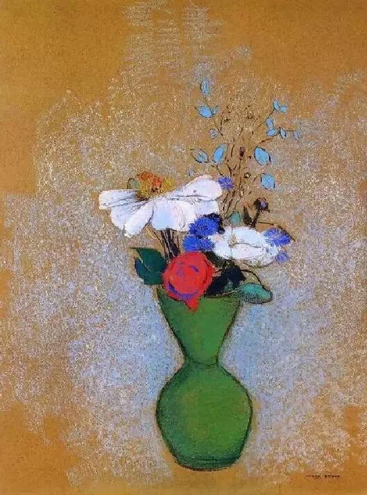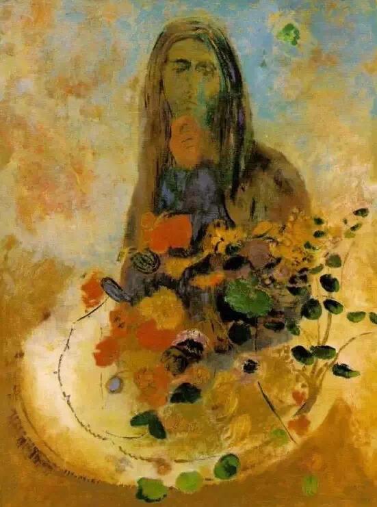 雷东是印象派画家的同时代人,但他在自己的艺术中寻求的却是神秘、想象和情感。高更在谈到雷东的作品时写道:“他的梦想在他所赋予它们的可能性中变成现实;在他的作品里,所有的植物和处于萌发状的生物在本质上都是有人性的,和我们生活在一起;它们当然也会分担着我们的痛苦……”他早期的作品主要是黑白版画,描绘出一个充满奇人异草的虚幻世界。而在随后的绘画生涯里,他开始使用浓艳的色彩。这些油画中,他将植物学方面的知识表现得淋漓尽致,并使之贯穿在花朵那给人以美的享受的形式和光彩夺目的色彩中。