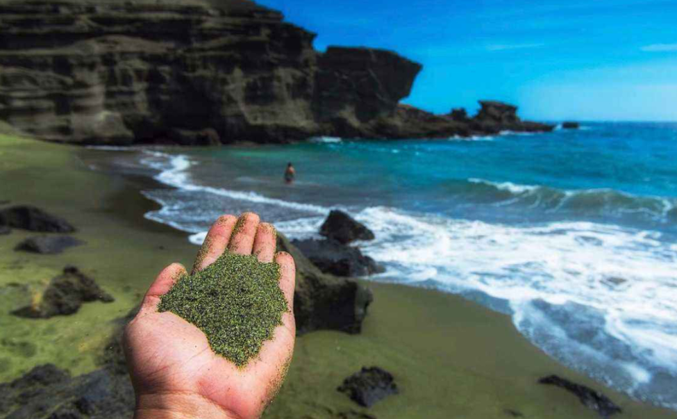 夏威夷群岛最南部的Papakolea沙滩,整片沙滩都是橄榄石。