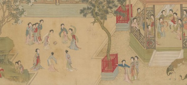 巾帼不让须眉,此次展览中还有众多女性运动形象,生动地反映了古代女子参与运动活动的情景。展出的清代的《仕女行乐图》中,至少有六个画面与体育有关,在蹴鞠画面中,几名女子正在踢球,与之相对的绿衣女子一手高举,一手垂后,做出抵挡之势,身侧的蓝衣女子似乎是防守,紧盯事态。此外,画面中还有投壶、棋弈等形象。此外,“竞之武”部分展出了一把我国历史上被当朝皇帝册封的唯一一位女将军秦玉良的朴刀。此刀既是秦玉良驰骋疆场、英勇杀敌的见证,也诠释了习武可强身健体,可“止戈为武,化干为德”,以武术消弭战事、维护和平的宗旨。