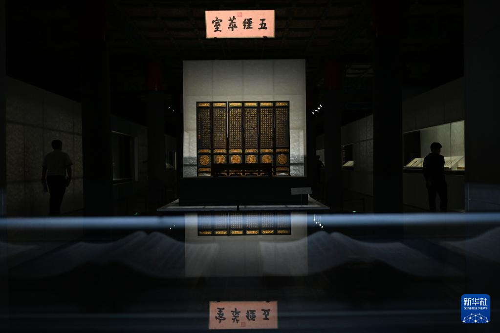 8月29日,人们参观展览。新华社记者 金良快 摄 8月29日,“照见天地心——中国书房的意与象”展览开幕式在北京故宫博物院举行。此次展览以中国书房的意涵与物象为主题,分为“委怀琴书”“正谊明道”“结契霜雪”三个单元,旨在探讨和阐释中国书房的文化内核以及如何赋予“书房”这一意象以时代精神的问题。 这是文徵明猗兰室图卷(8月29日摄)。新华社记者 金良快 摄 这是清乾隆帝楷书五经萃室匾及炕桌、炕屏(8月29日摄)。新华社记者 金良快 摄