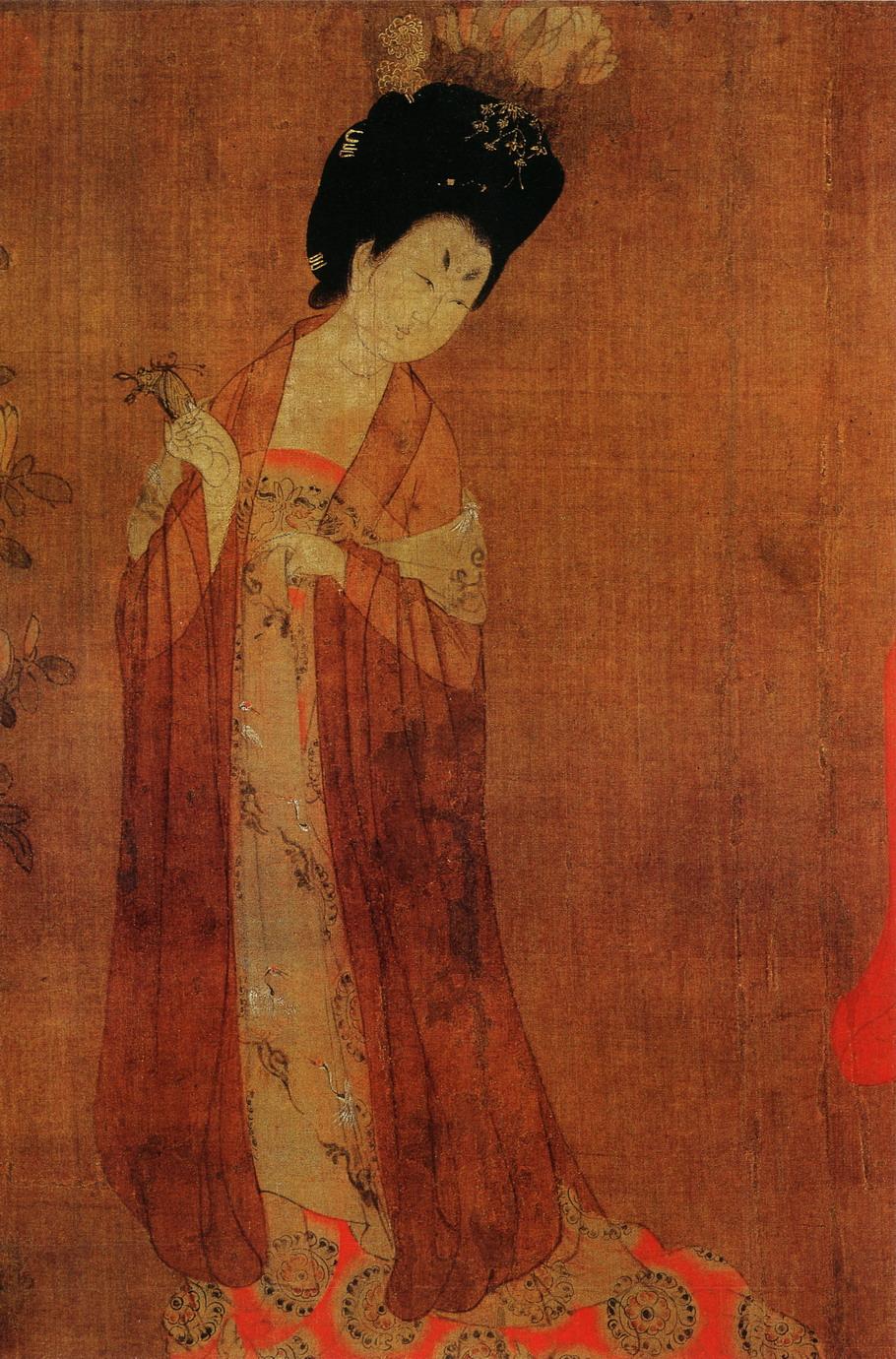 牡丹仕女图 唐寅 立轴纸本设色 纵125.9厘米 横57.8厘米 上海博物馆藏