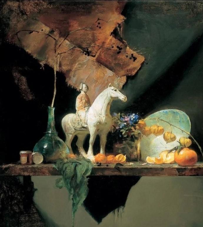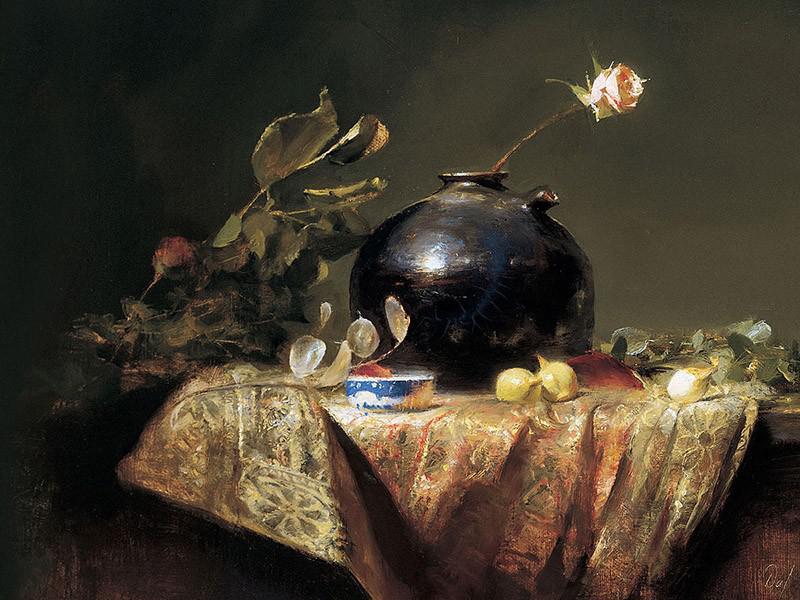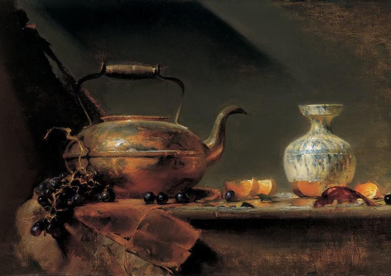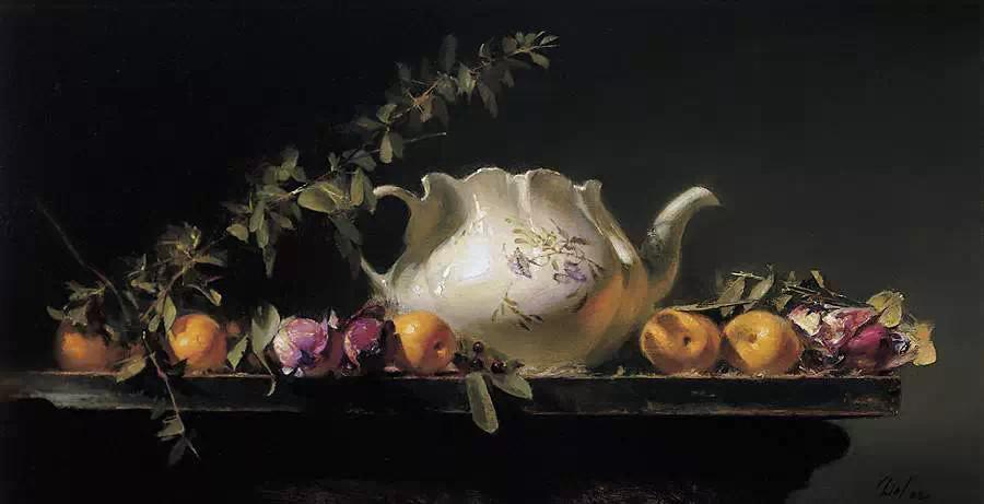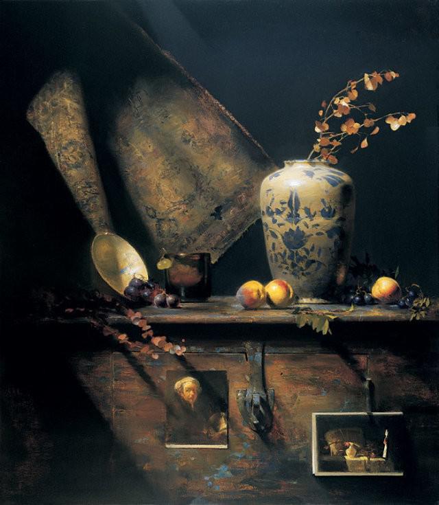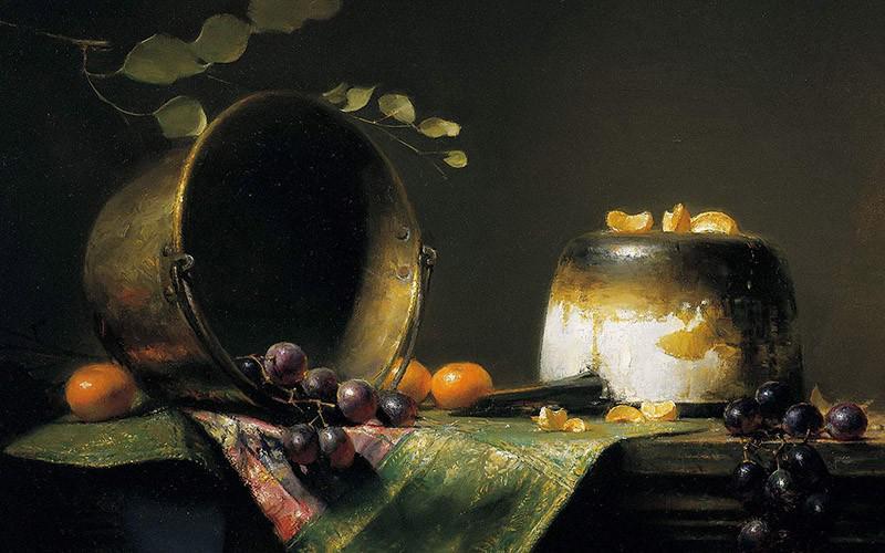 这位被称为当代伦勃朗的画家,他的古典写实让人神往。 画家的情愫含蓄地赋予在画布上的这些器具上,隐隐讲诉着一些故事。
